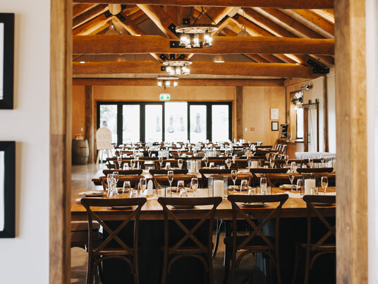 Our beautiful log cabin has a seating capacity for up to 150 guests, with an expansive covered deck area - ideal for all seasons.